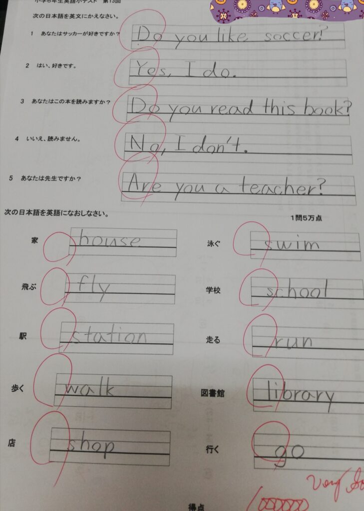 6年生は、算数と英語を学習しています。先ほど書いたように6年生の算数の内容は5年生ほど多くないため、英語の時間を確保できます。塾での英語は文法と書くことが中心です。川口市で採用されている5ラウンドシステムは、特に前半は文法軽視・書くことも軽視なのでなんとなく楽なイメージがありますが、後半から急に文法が入ることになりこのあたりで英語苦手な生徒が大発生します。