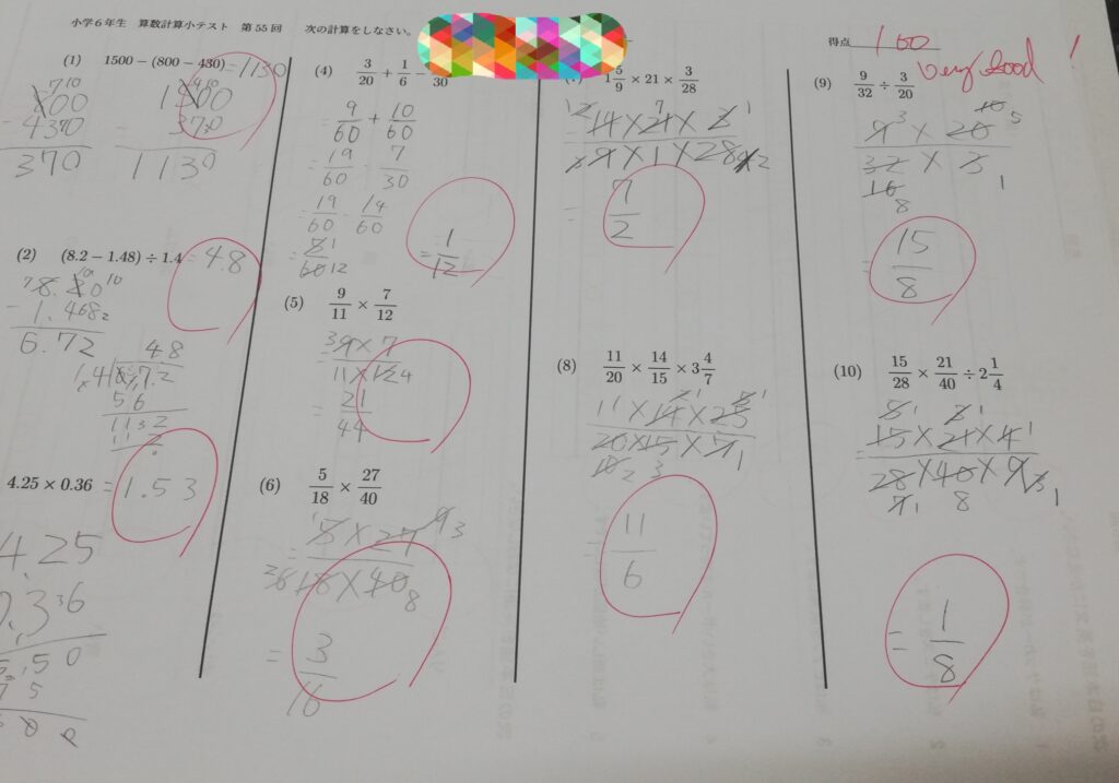 中学になってから塾に入る生徒の中にはこういった計算でミスする生徒が毎年いるので、とにかく小学生のうちに基本的な計算をしっかりできるようにというのが私の考えです。